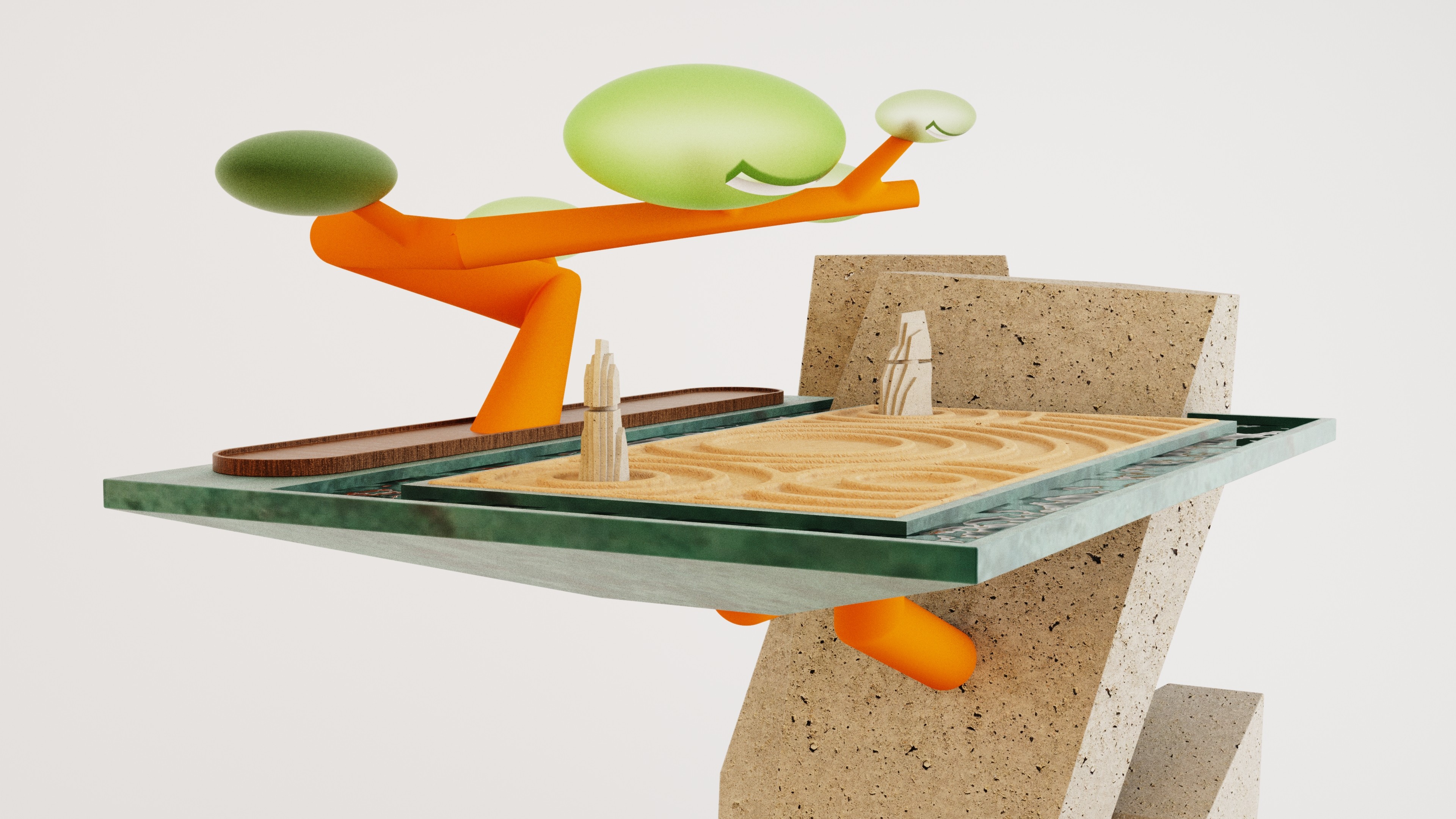 I wanted to make the sink a mix of industrial materials and forms, but with a message and feeling rooted in Zen aesthetics.
