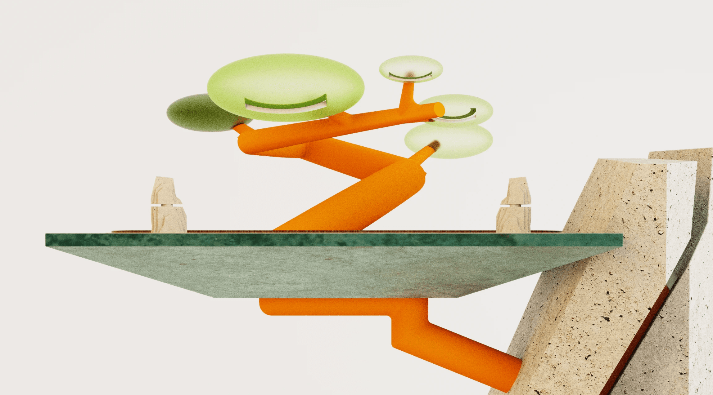 This birdhouse had two main purposes, primarily to design a home specifically for an Elf Owl, and secondly to incorporate the design language of MIO Culture. The main body is rendered to appear as steam pressed felt for the green pattern, with the panels underneath being crafted out of cork.