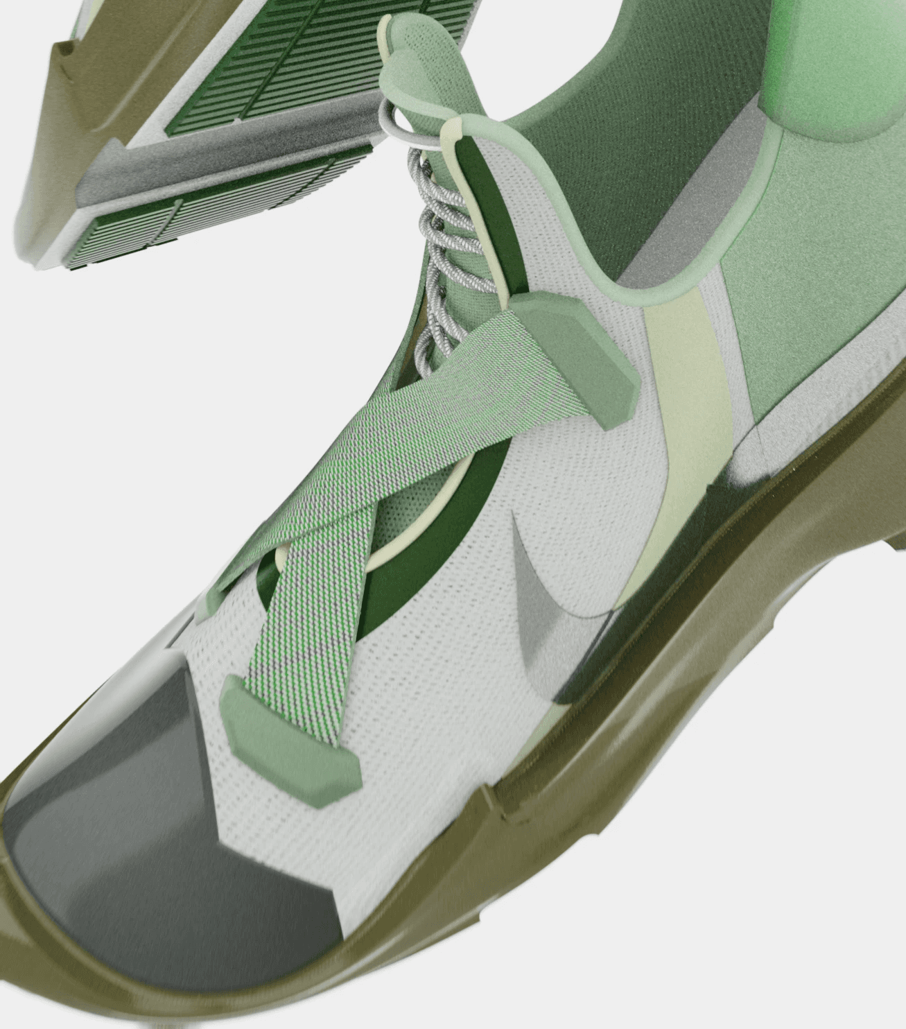 The green color-way is inspired by the natural elements of the trail, and the added features, such as the large, textured sole, and two magnetic straps, provide extra stability.